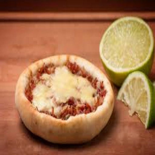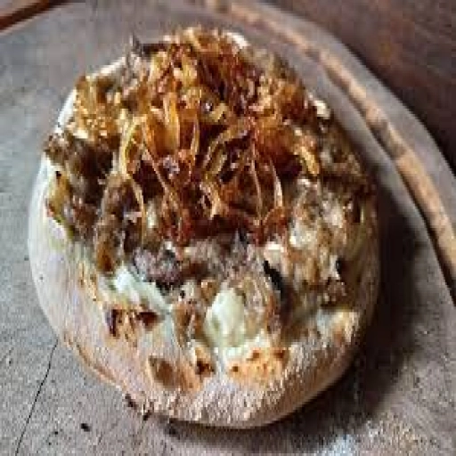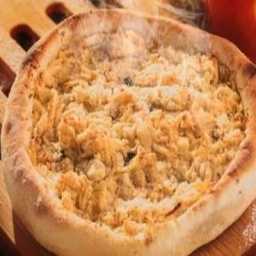 Muçarela, Costela Desfiada e Cebola Caramelizada.