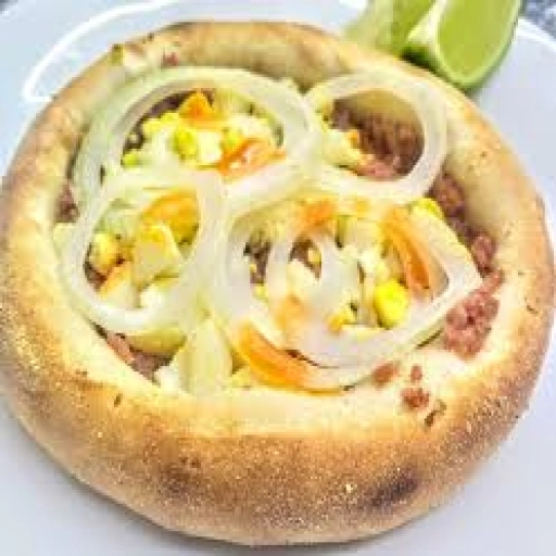 Presunto, Ovo, Milho, Cebola e Queijo.