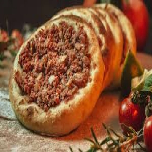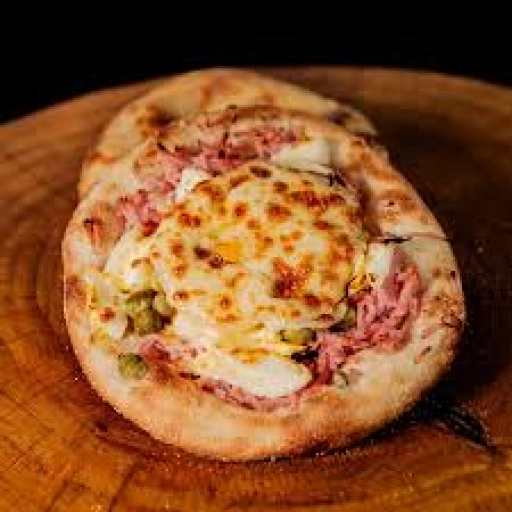 Deliciosa esfiha de calabresa fatiada com cebola.